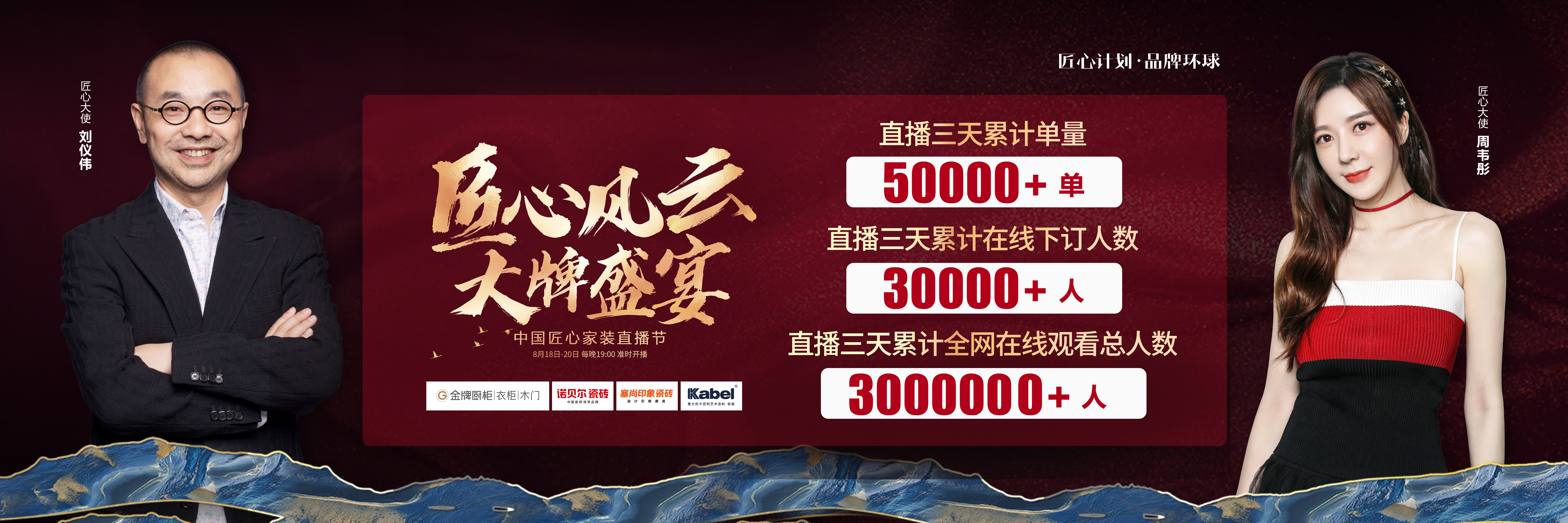 由宝博厨柜、诺贝尔瓷砖、塞尚印象瓷砖、卡百利艺术涂料联合缔造,创赢科技系统支持全案营销执行的“匠心风云 大牌盛宴”中国匠心家装直播节于8月20日圆满落...